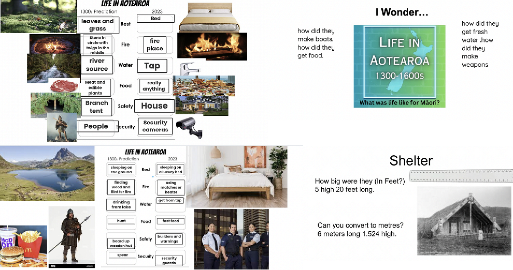 Our senior students have been exploring basic survival needs and researched their initial wonderings about the topic of life in Aotearoa during the 1300s. Year 5-6 have been utilising their digital skills to share their predictions and research on shelters.