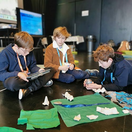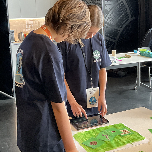 After the swag bags were explored, tamariki broke into three groups to learn an important pūrākau of Ngāti Wheke; Tūterakiwhanoa, Te Rākaihautū, or Tamatea Pōkai Whenua. Over the two days, tamariki participated in four workshops where they were using new IT tools to go deeper with an aspect of their pūrākau. You can check out the workshops and finished projects on the Aupaki Techfest Website, and through the video below.