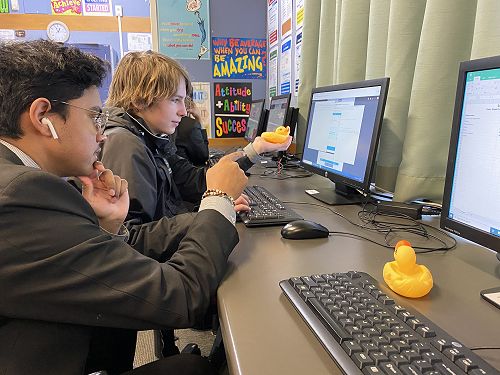 It is often difficult to find your own errors when you have a line of code incorrect, so students have been introduced to the concept of rubber duck debugging. It's helpful to explain your code to another person so you can find what isn't working and can then debug it. Instead of using another person (who is likely busy) you can use an inanimate object, such as a rubber duck. Typically as you are reading code to your duck you realise what the problem is and can correct it.