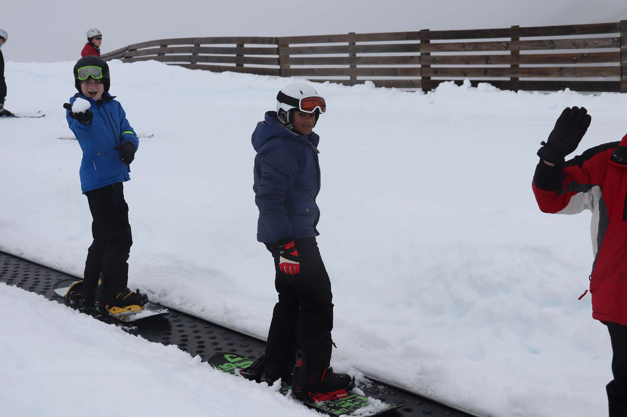 I first arrived at the hall at 6:30ish, and from there we loaded into the buses. It took about an hour and a half to get to Porters; my bus was the last one to arrive. The mountains around were covered in a thick layer of snow, thankfully it was sunny and there were no clouds in sight. The person there gave us each a small blue tag that held our number, and the name of the person that would lead our first lesson. I was number 25, so I trod into a small building and walked up to the people handing out ski and snowboarding boots. Telling them my number, I was handed a pair of ski boots. I took a couple of minutes trying to get them on but eventually managed it. I then headed towards the exit to get a helmet, once finding one that fit me I headed out.