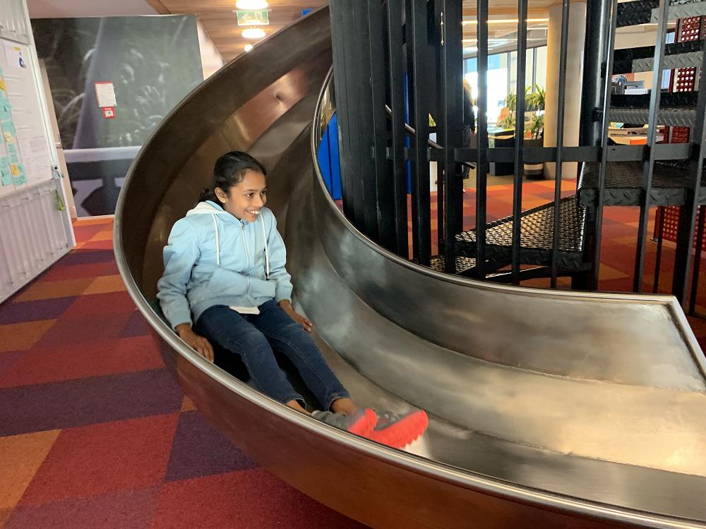 The girls also had a personalised tour of these exciting work environments that were quite similar to our Avonhead flexible learning spaces! Although - we were impressed by the on-site gym, flash coffee machines and FREE soda vending machines on each floor. One of the highlights had to be the twirly playground slide that connected all 3 floors at Trade Me!! Sure beats taking the stairs or lifts!