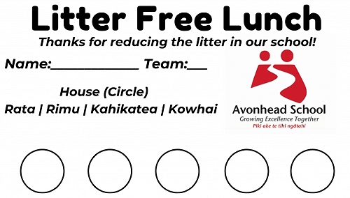 Our student councillors will be helping out on duty this term also (they will be wearing their named council badges) and be handing out Litter free AA cards to help promote this. These cards will go into the house boxes and the draw for lunch with the principal as well as this there will be a class reward at the end of the term. Our student council also want to support and encourage students to look after our environment more, by encouraging more students to pick up rubbish they see lying around our school too - so our councillors will be on the hunt for some Avonhead Enviro Superstars by handing them special AA awards this term also.