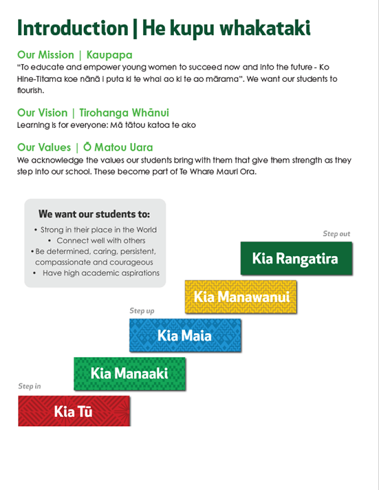 Ko Hine-Titama koe nānā i puta ki te whai ao ki te ao mārama | Educating and empowering young women to achieve now and in the future.