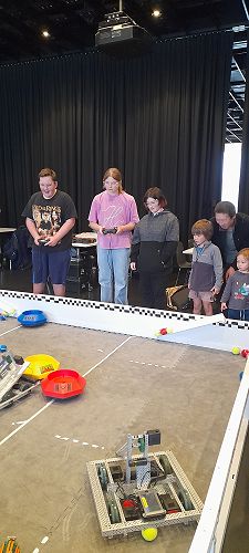 The strategic robot game they were designing and building their robot to win was called Colour Carnage. It required their robot to be able to pick up coloured balls and load them into the coloured tray, which could then be dragged into the alliance’s goal scoring area. Their robot was effective at pushing other trays around and was used in many alliances to act defensively. The robot was able to participate with success and the students enjoyed a 5 hour festival event which was visited by many Otautahi residents.