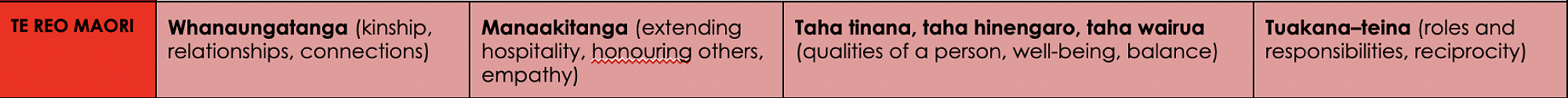 Te Reo Maori - we are going to make connections with these 4 concepts over our learning.