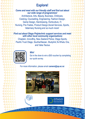 The inaugural Pasifika Careers Evening (Vaka Moana), an event designed to inspire and inform our Pasifika communities about the diverse opportunities available at Otago Polytechnic will be held on Wednesday 21st August.