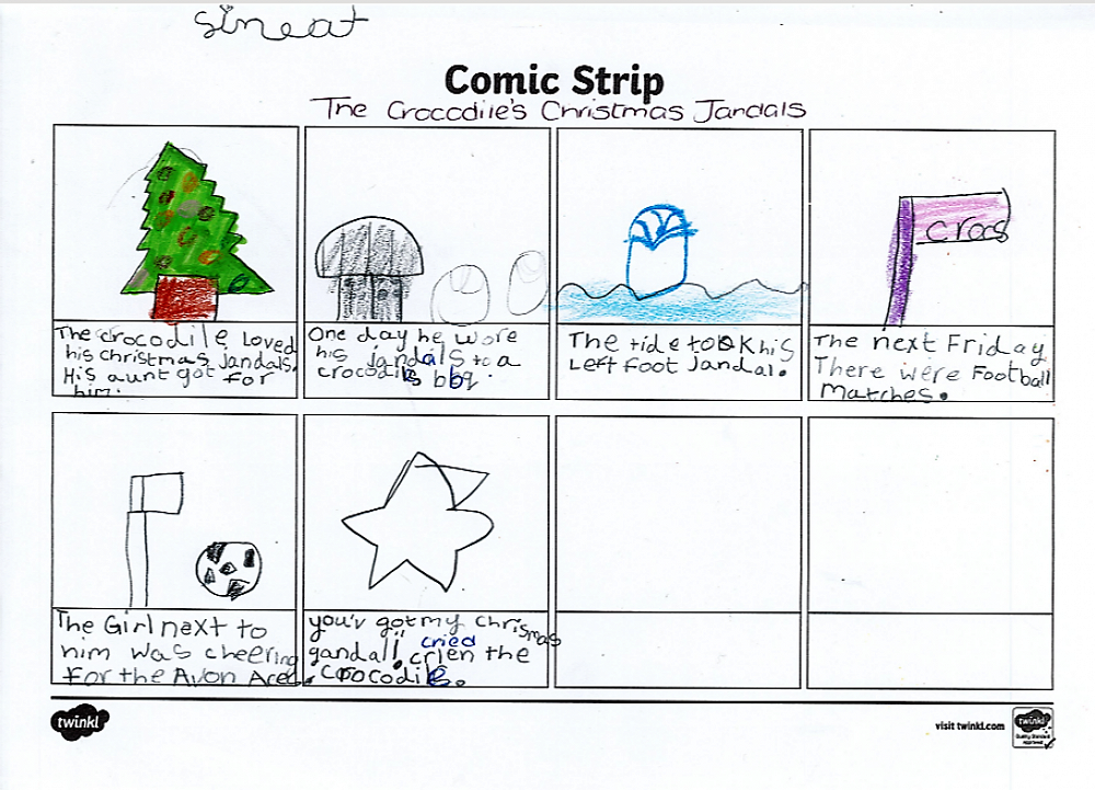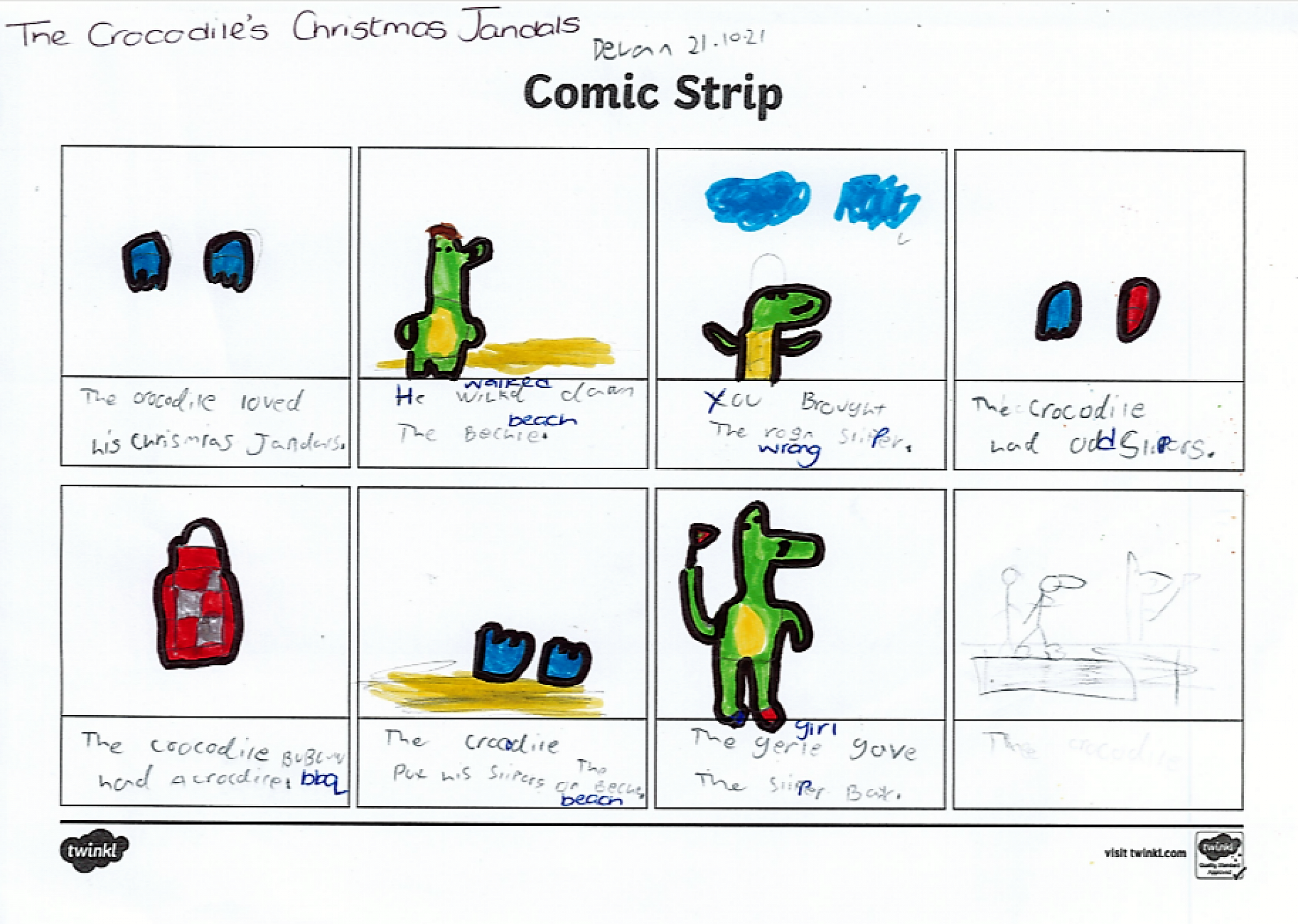 Some of the children in Kowhai and Kawakawa class have been learning to tell the story of The Crocodile's Christmas Jandals in comic strip form.