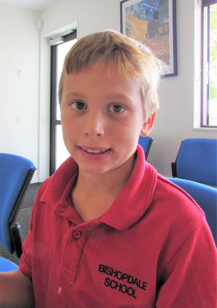 Karlos was given a new pool for Christmas and had fun playing in it with his sister, although he said they did put some rocks in the bottom of it. He said he likes his new class and his new teacher, Mrs Branch. He said his favourite thing at school is playing in the playground.