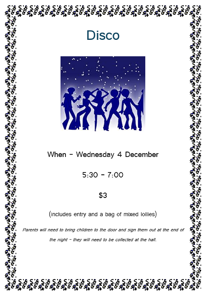 A reminder that this is taking place in the school hall from 5:30 – 7pm. This is only for students who come to our school. The cost will be $3 which can be paid at the door and this will include entry, face painting and a bag of lollies. Thanks to those parents who have already volunteered to help bag lollies. We have all the lollies ready to bag and the student leaders will start on this project this week – anything they don’t manage to finish we will ask our parent helpers to finish off for us.