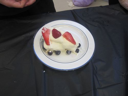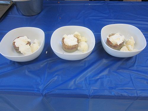 Last but not least was the dessert. What some consider the best part of a two course meal! These desserts were some of the best I have seen in the competition and the students need to use a range of skills and techniques to make them successful. The desserts included: pavlova with berries, apple crumble with vanilla ice cream, chocolate brownies and berry sauce with a berry swirl ice cream, Neapolitan mousse with a brownie and boysenberry ambrosia ice-cream and a mandarin syrup cake.