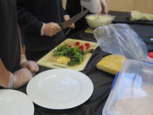 Today we put all our new learning into action and prepared and cooked a three course meal for some very important and lucky people... the judges. There were 5 groups altogether and they prepared a main and a dessert.