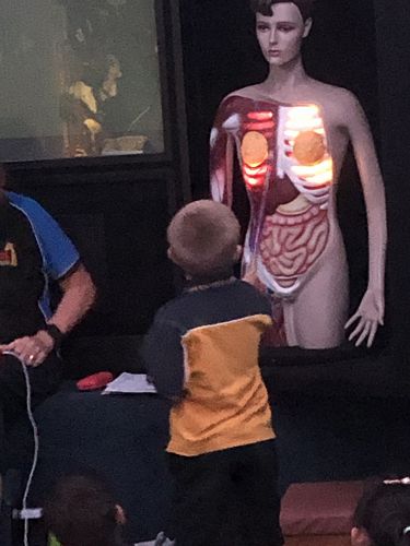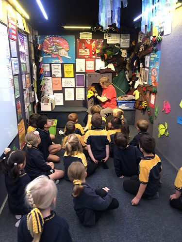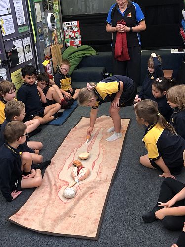 We all really enjoyed our two visits to the Life Education van. We learned about how we breathe in oxygen that the plants make and use it to give us energy. We had fun learning about where some of our body parts fit in our body using a life- sized doll called Tam and also Carpet Kid. Harold sang us some songs and told us some very funny jokes that made us laugh a lot.