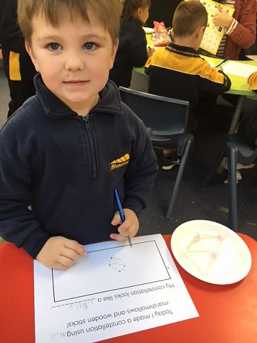 Check out our photos below of our very own constellations that we have created using marshmallows and wooden sticks!