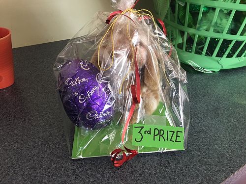 Our Learning Assistants have created a wonderful raffle with 3 terrific prizes. There are lots of yummy Easter treats, two beautifully handcrafted teddy bears, a very real looking rabbit and much more presented in 3 wonderful prizes. (See the photos below)