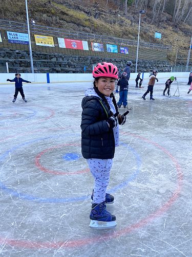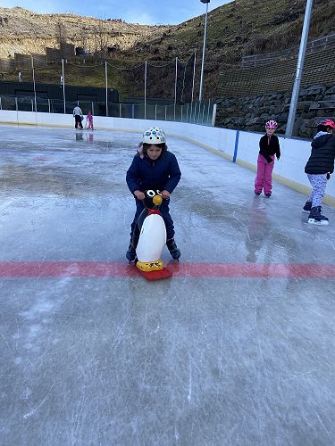 Angela: At ice skating I had so much fun learning how to skate and it was my first time skating and I didn't need a penguin holder.