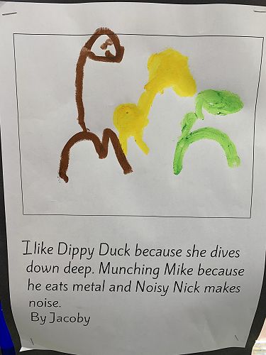 Using a multi sensory approach, the children from rooms 3,4, and 5 are highly motivated to learn about each character. Two characters visit our classroom each week and we immerse ourselves into Letterland through literacy, music, art and in fact most curriculum areas . These stories explain letter sounds & combinations of sounds, allowing the children to progress quickly to word building, reading and writing. It is amazing how fast the children's alphabet knowledge develops and their ability to use this to help them read and write.