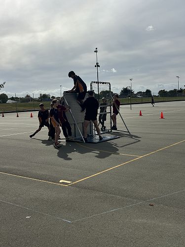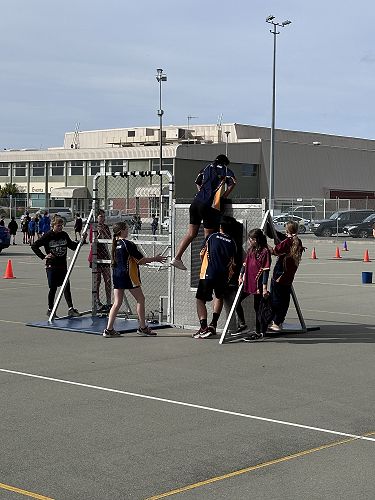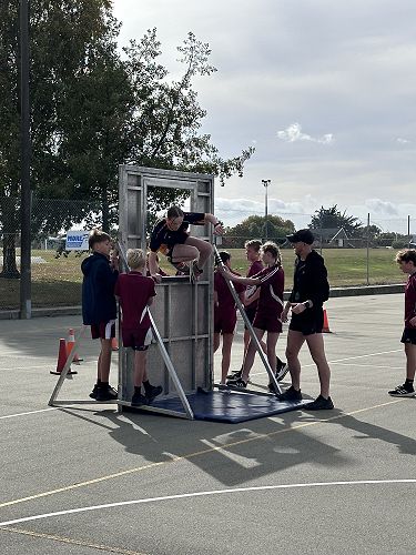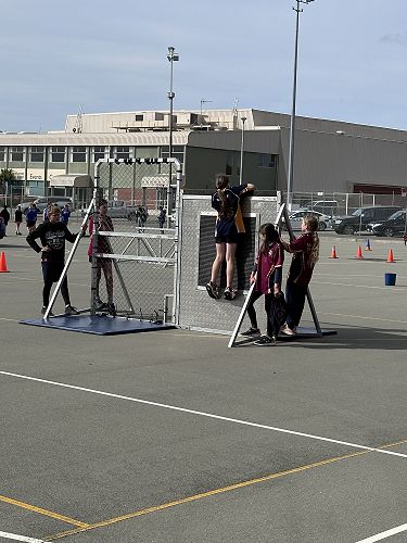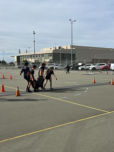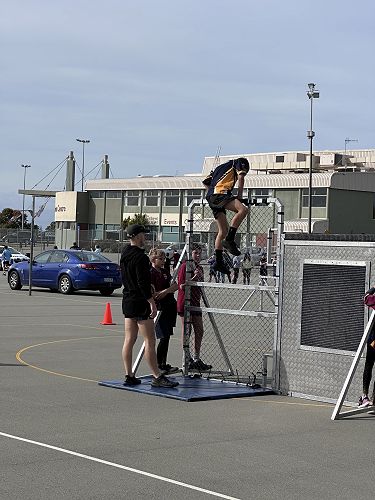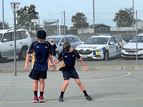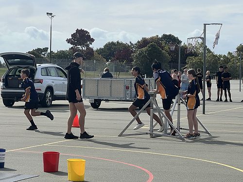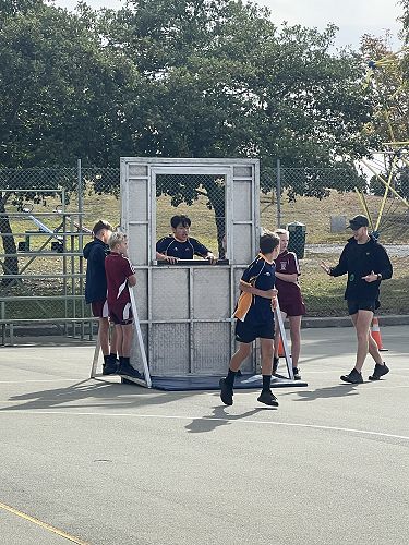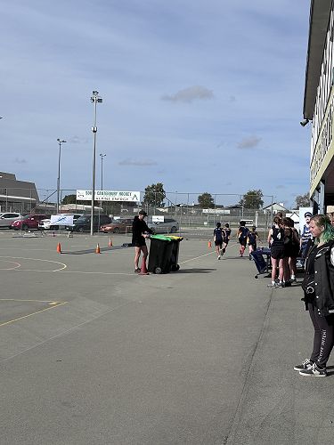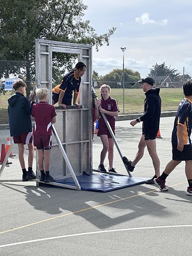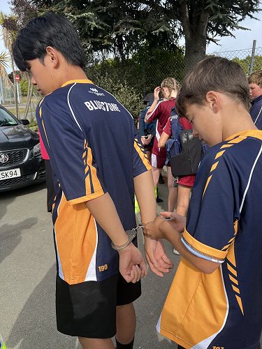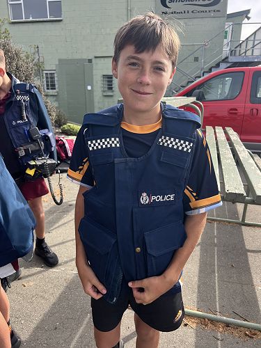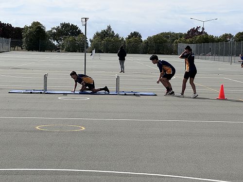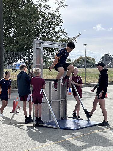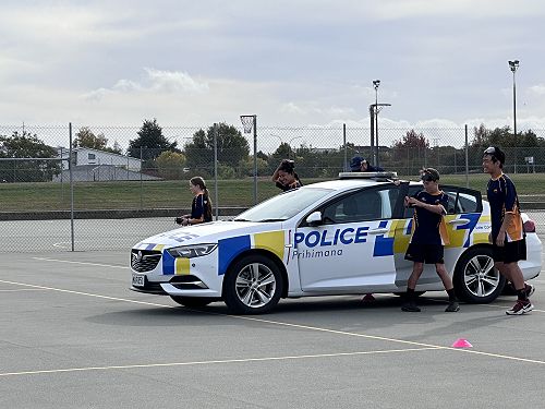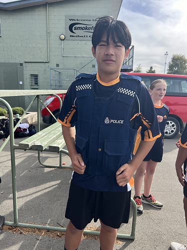 Every year schools around South Canterbury have the chance to compete in the Police Challenge. PCT is a Physical Competency Test. This is a very competitive event with around 18 teams entering. Teams are made up of 4 students, 2 girls, 2 boys, that complete the same course that sworn police officers do for their fitness testing every two years. Teamwork, speed, strength, agility, balance, fitness are just some of the skills needed to post a competitive time. Some of the course involves teams having to climb walls, jump through windows, carry a 90kg dummy, running, crawling under obstacles, pushing a trailer and many more. Teamwork is essential as all members of the team must complete the course and the clock stops when the last person is over the finish line. As well as participating in the PCT challenge this year the students had the opportunity to try on Police uniforms, use hand cuffs, look in an undercover police car. A highlight for some of the students was being having their running speed tested out with a police radar. Haibin was the second faster runner of the day.