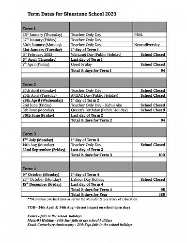 - Friday 15 December - Last day of School for 2023, school finishes at 12:30pm