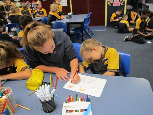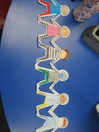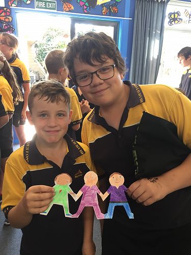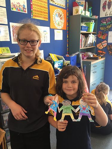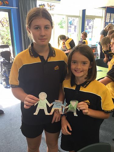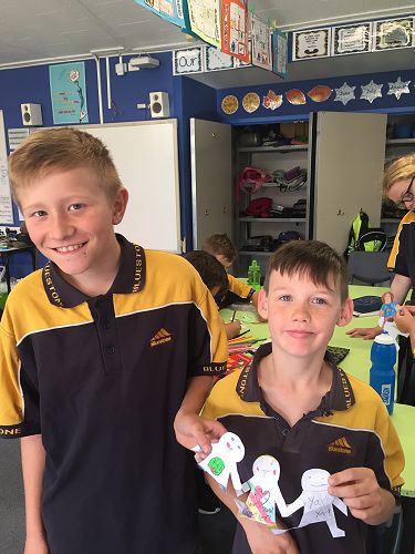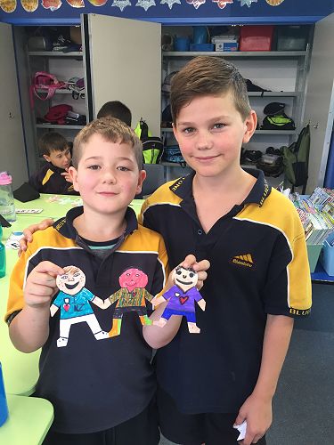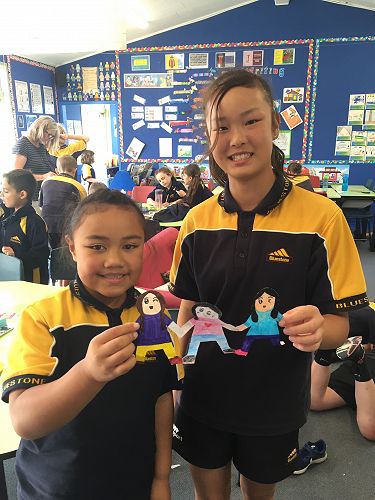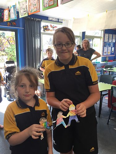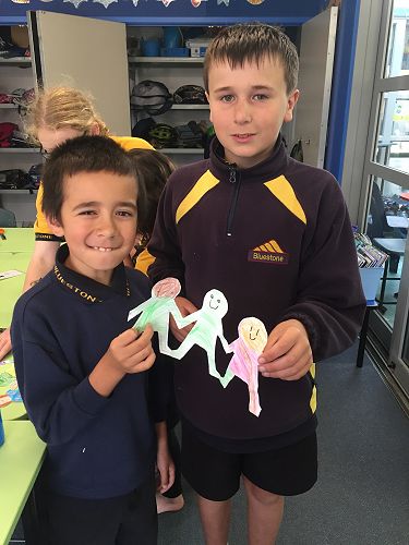 This has been an excellent opportunity for our buddy classes to work together to express their sorrow at this tragedy and write messages of aroha, hope and support. The paper dolls reflect the diversity of our New Zealand culture.