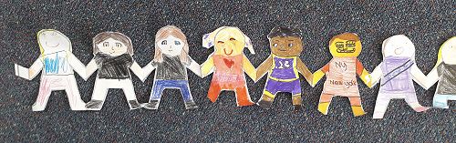 “We want to create a long, long line of paper dolls that show kids of all different cultures, together holding hands,” says Emily, aged eight.