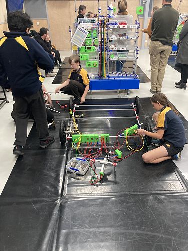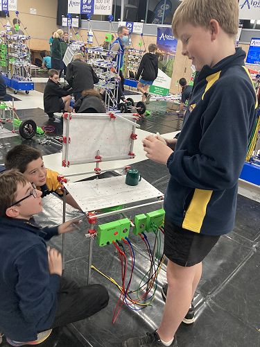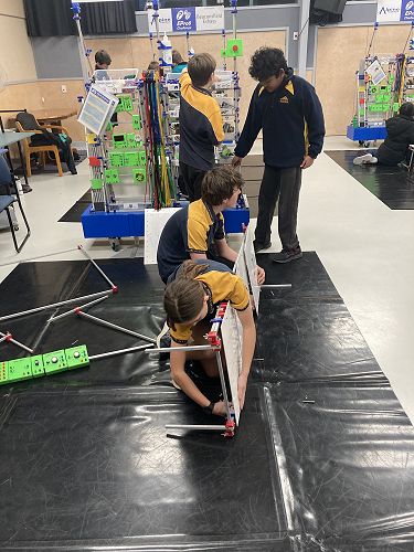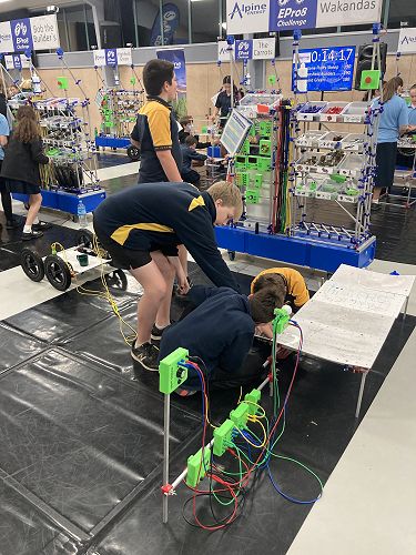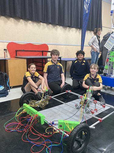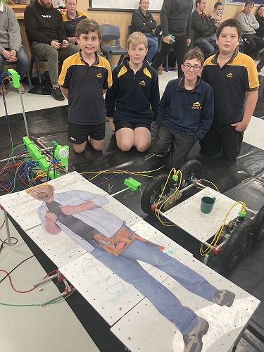 The Bluestone Fluffy Sheep consisting of Noah Healy, Kyla Beveridge, Kesav Odassery Mithundas, and Jacob Wederell came tied for 6th after building a road marking machine.