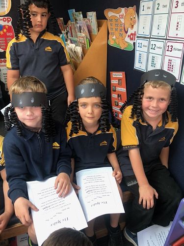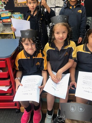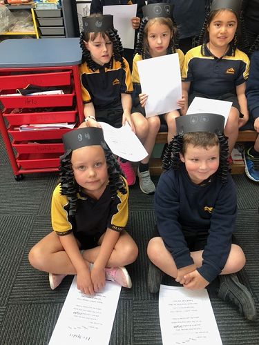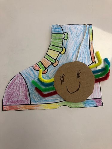 Last week we had a poem about a spider. We say our poem every day and talk about the language features within the poem. On Friday we usually do a fun craft activity related to our poem. Last week we made spider headbands and attached eight bouncy legs. We also made spiders with corrugated cardboard and pipe cleaners, and attached them to a boot that the spider was crawling into.