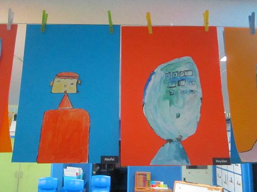 The students learnt about the artist Pablo Picasso and cubism art. They created self portraits based on his style and continued with watercolours and outlining their portraits in Indian ink.
