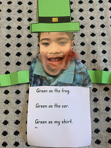 Not only did we look the part dressed all in green we had a whole day with green themed activities to celebrate St Patrick's day. We used green pen for handwriting, a green craft table, green discovery activities and wrote stories all about green things.