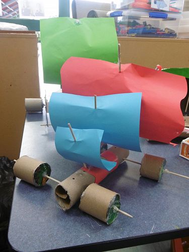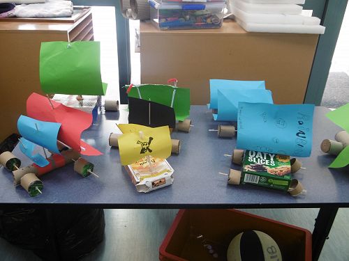 First we planned and drew our wind powered cars. Then we built our cars and tested them. Next we modified or improved our cars.