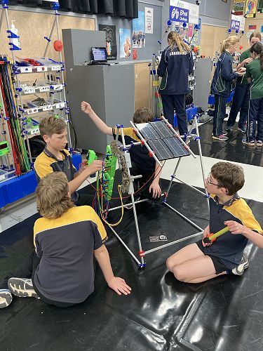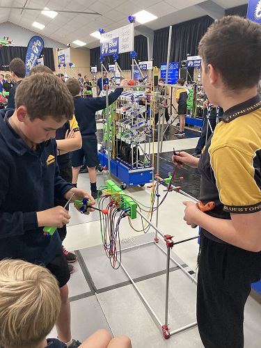 These tasks were then judged and 3 of those teams qualified for the Quarter Finals last Wednesday night. We had 3 Yr 7/8 teams in the event which saw them spend 2 1/2 hours building and solving problems to earn points. All teams did extremely well all working together to solve the challenges. The last 20 minutes were very exciting, where many teams were trying to earn the last few points to take the top spot. At the end of the night, there was a 5-way tie for 2nd place which included the Bluestone Builders. Only 3 teams could go through to the semifinals. The tiebreaker involved using 1 battery and 3 push buttons to Turn on a motor, a light and a buzzer.