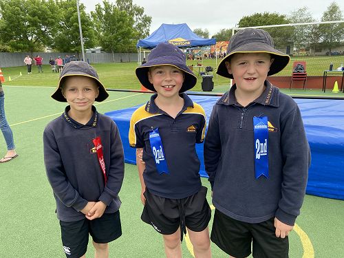 Long Jump: 1st place - Leo Hutton, 2nd place - Hadlee Shepherd, 3rd place - Mitchell Smith