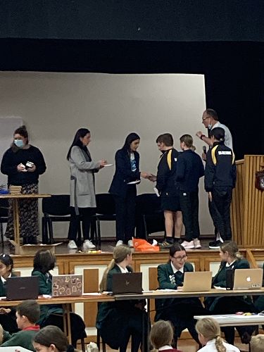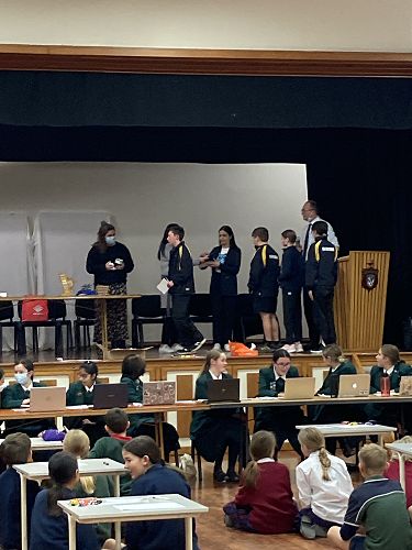 Team 1 Yr 8 members Asher Coe, Ella Kavanaugh, Ben Davis and Harley Hurst. The members in team 2 were Macie Watts, Sophie Coe, Seth Turner and Noah Healy. Of all there the 30 teams competing, the 2 year 8 got into the top 6 overall.