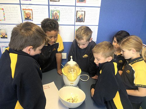 We made popcorn! We figured out how a hard kernel turns into a fluffy piece of popcorn through heat and pressure.
