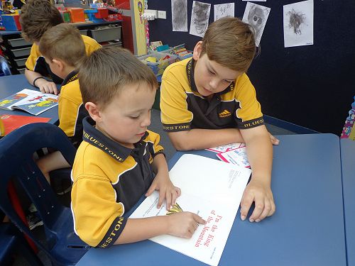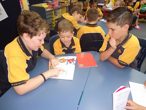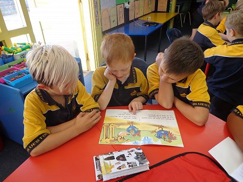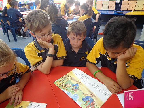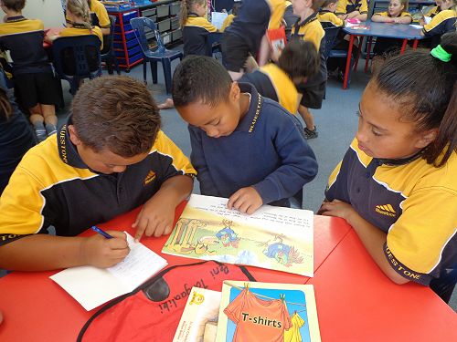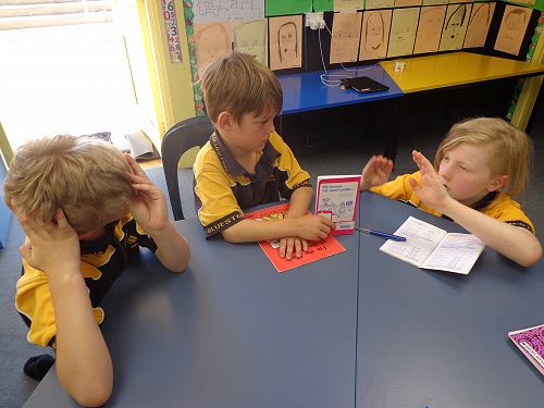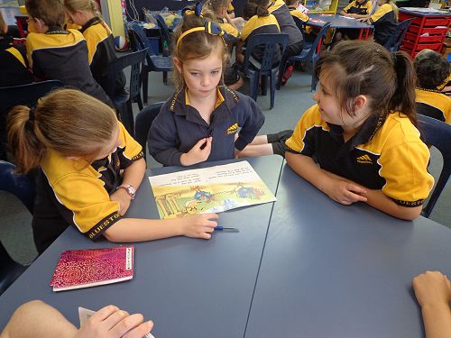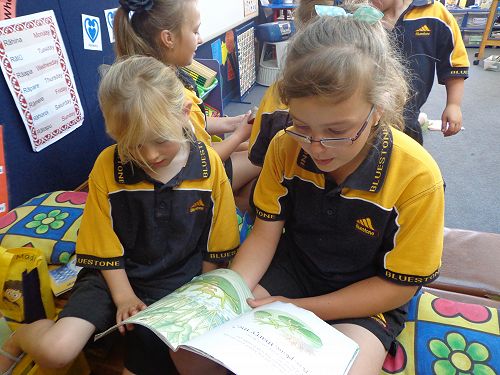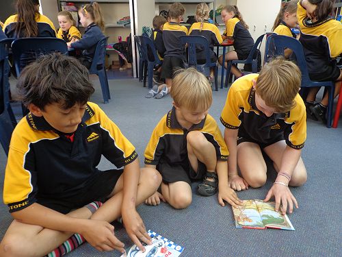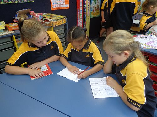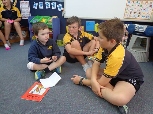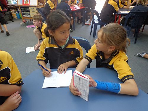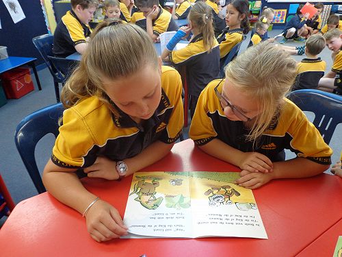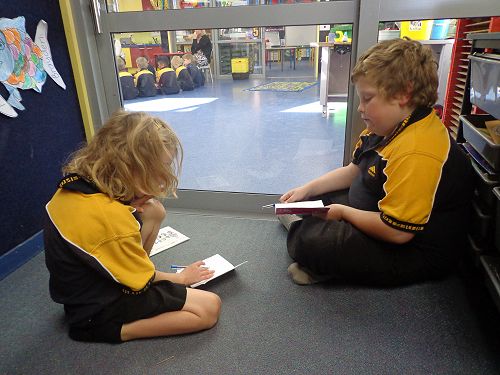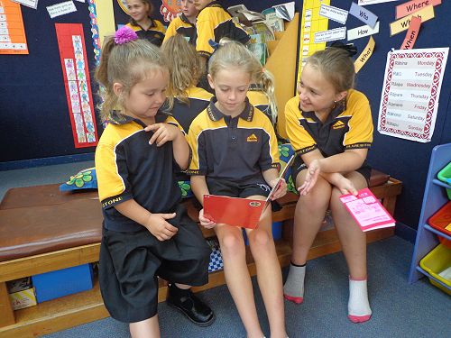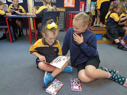 Each Friday we join with Room 1 and the older students check the younger children's basic facts and spelling words for the week. When we've done that, they read their reading book to us and then we read to our little buddy.