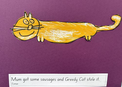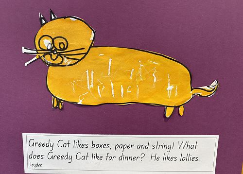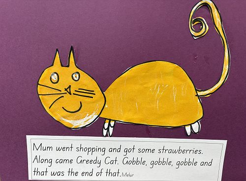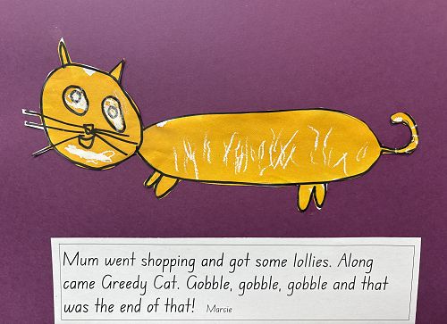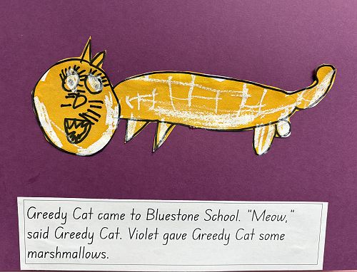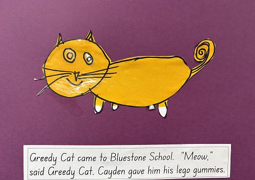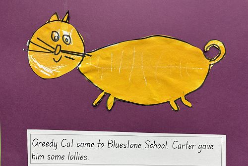 This inspired Room 3 to write our very own Greedy Cat stories. The children included antics about Greedy Cat coming to Bluestone School, mischief at the supermarket and lots and lots of food stories.