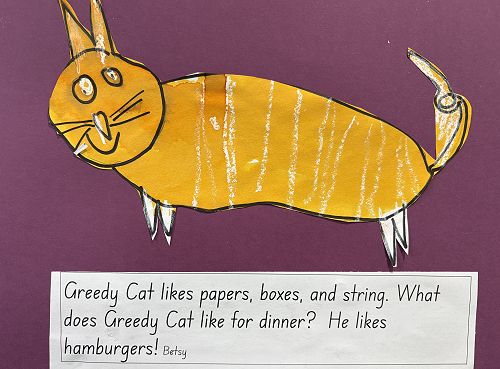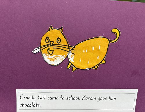 The children also illustrated their stories with a gorgeous drawing of Greedy Cat.