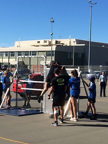 Every year schools around South Canterbury have the chance to compete in the Police Challenge. PCT is a Physical Competency Test. This is a very competitive event with around 20 teams entering. Teams are made up of 4 students, 2 girls, 2 boys, that complete the same course that sworn police officers do for their fitness testing every two years. Teamwork, speed, strength, agility, balance, fitness are just some of the skills needed to post a competitive time. Some of the course involves teams having to climb walls, jump through windows, carry a 90kg dummy, running, crawling under obstacles, pushing a trailer and many more. Teamwork is essential as all members of the team must complete the course and the clock stops when the last person is over the finish line.