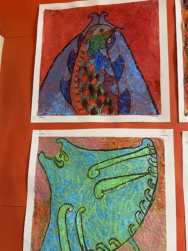 The students started this term exploring pastels and blending with a focus on wild birds and then most recently have been working on batik designs to reflect either Maori or Polynesian designs.