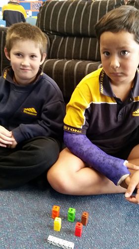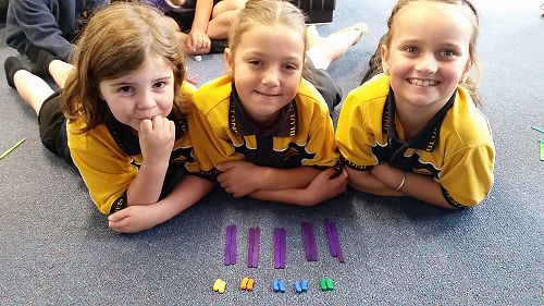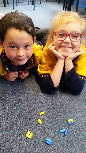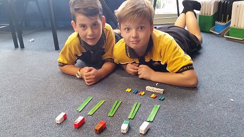 That is where Room 9 is currently. The challenge on day 1 was to use materials to create 5 x 2. Everybody knew the answer to this question was (and still is!) 10. The challenge was to create this using materials - dice, plastic beans, interlocking cubes or ice block sticks.