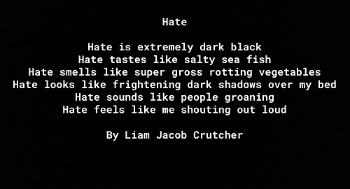 Kaelan: I'm proud of my poem and I liked the background that I chose.