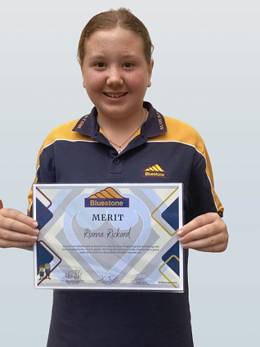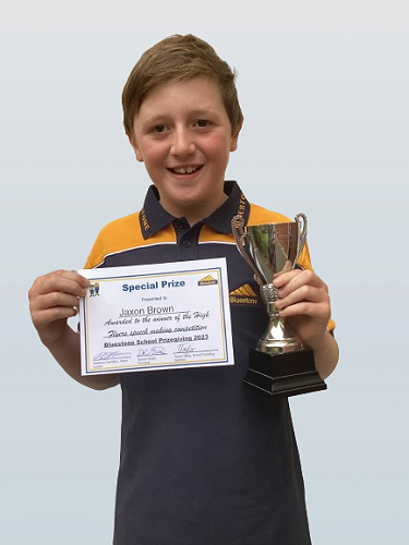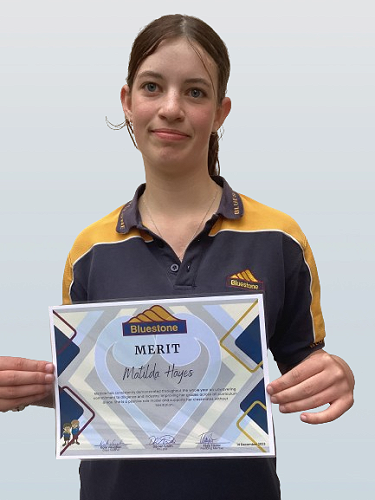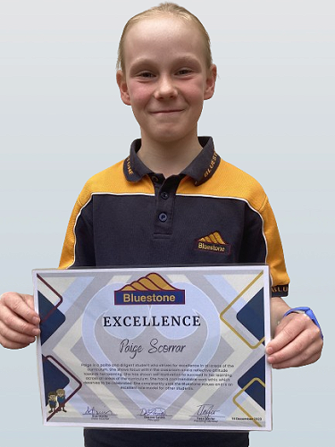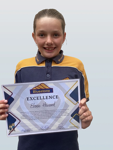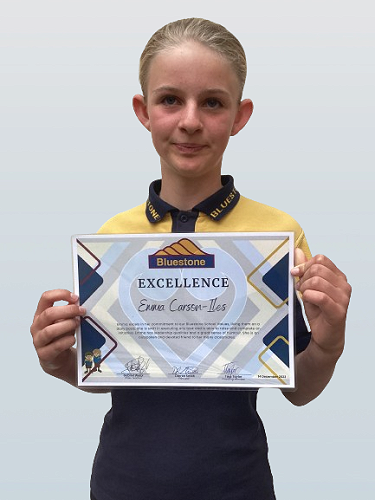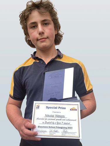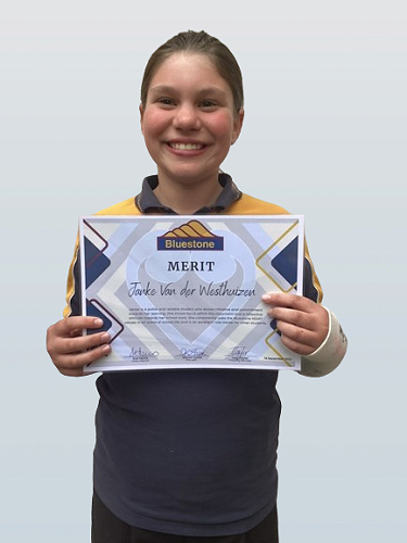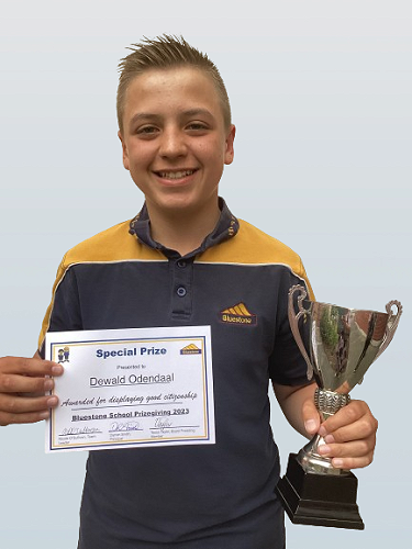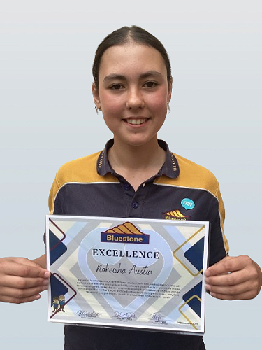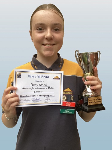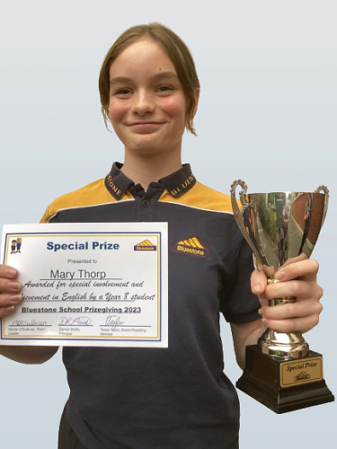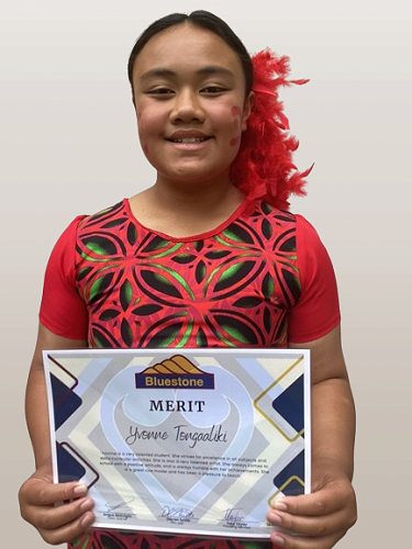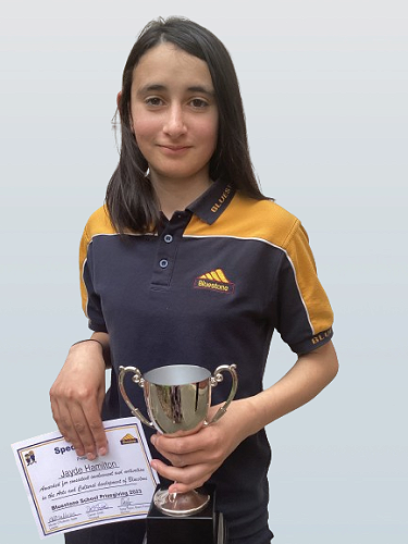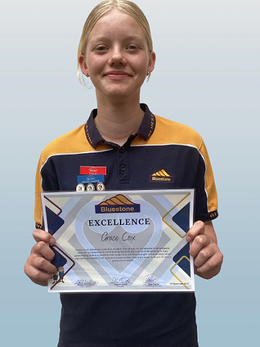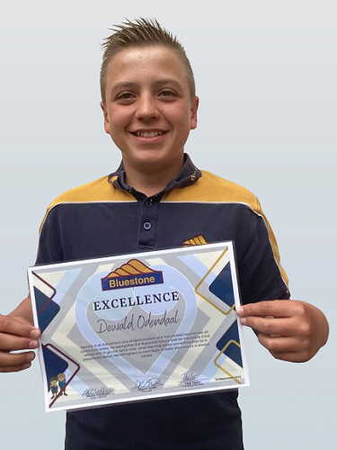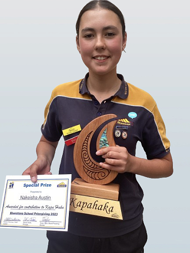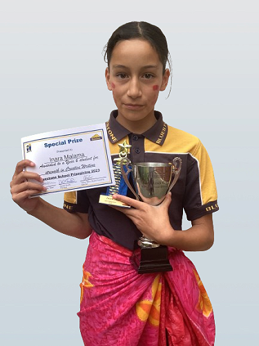 Awarded for consistent involvement and motivation in the Arts and Cultural development of the Bluestone School.