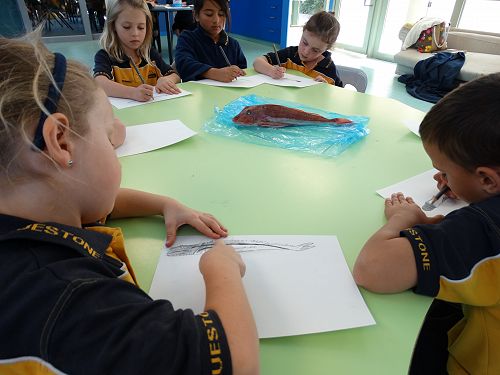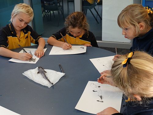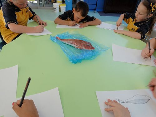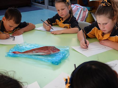 Siobhan produced a number of fish that captured the attention of students. Students carefully examined these fish before drawing in great detail. There is nothing like the real thing to motivate great art!