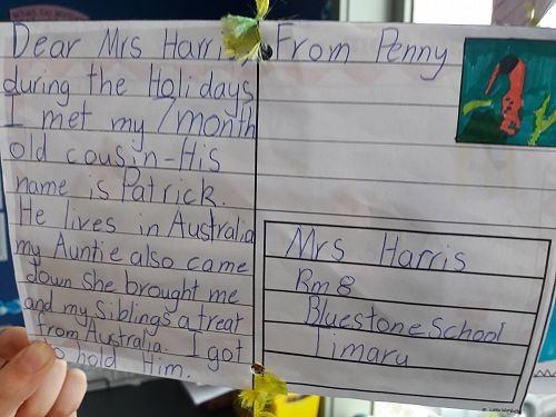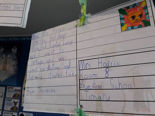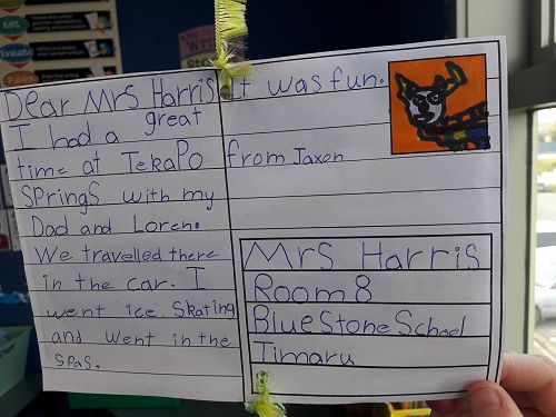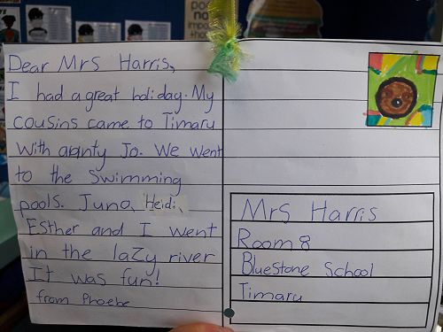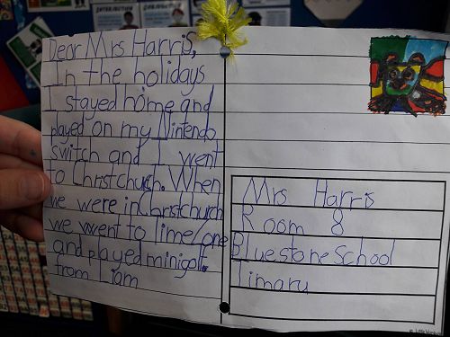 At the beginning of this term Room 8 learnt how to write postcard messages. We used our holiday highlights to practice writing brief but interesting messages and included an illustration as a snapshot of our holiday. We really enjoyed writing our holiday postcards and have hung them in the classroom so we could read each others messages.