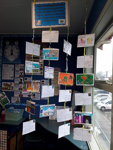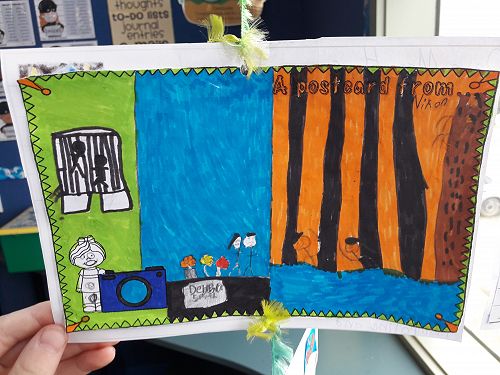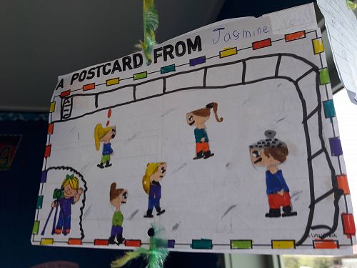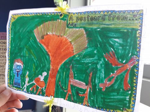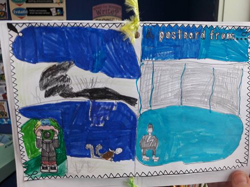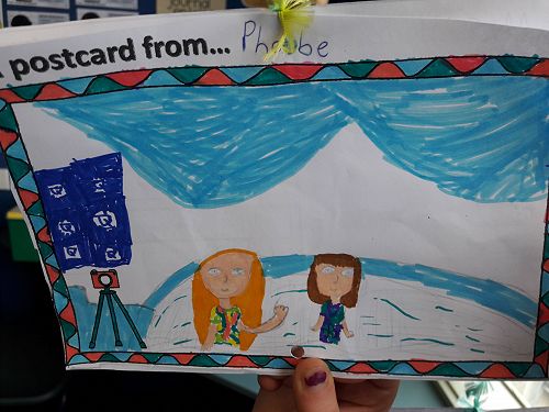 In writing we designed and wrote a postcard to Mrs Harris to tell her about our holiday.