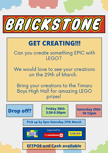 Brickstone is on this Saturday 29th March from 10am to 4pm at Timaru Boys High School.