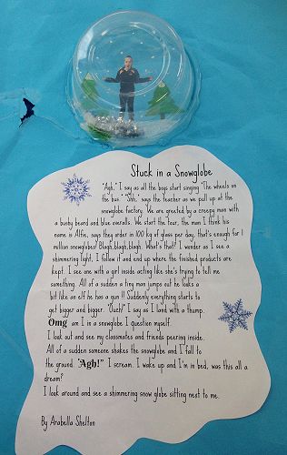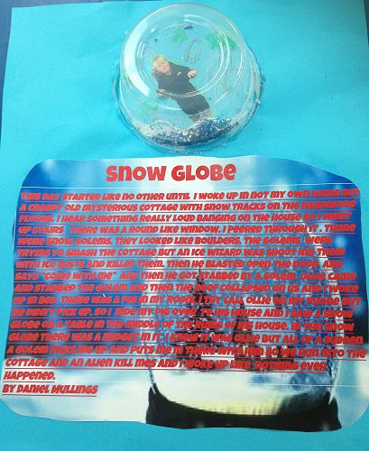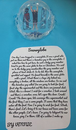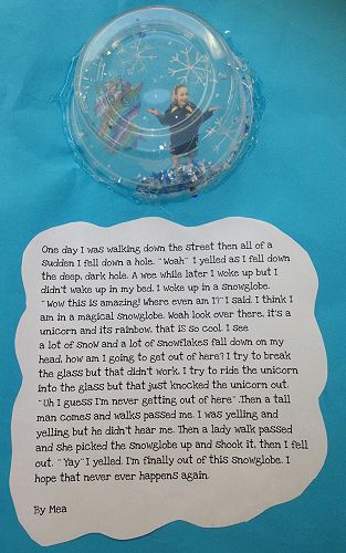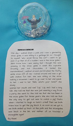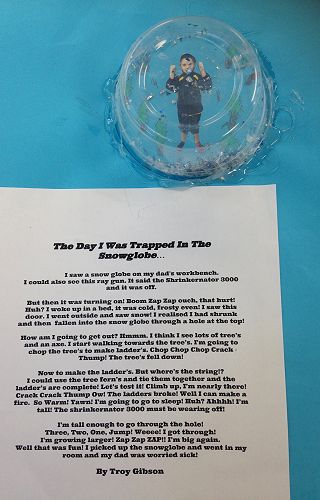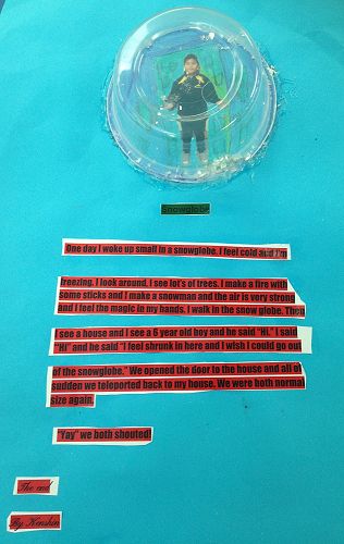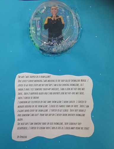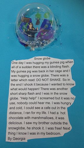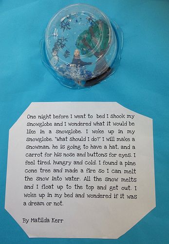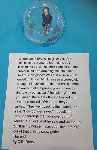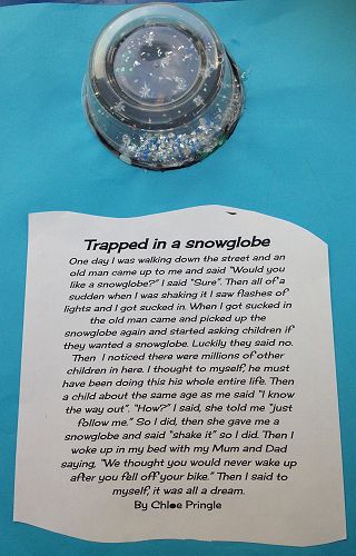 Room 12 were posed with the problem of being trapped in a snow globe. This sparked some creative writing of how did they get in the snow globe and then how were they going to get out. A range of imaginative stories emerged: some action-packed, some mysterious and some humourous.