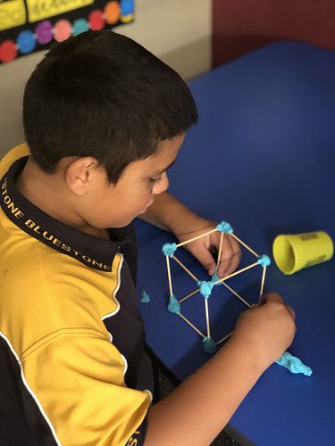 The students in Room 19 worked in small groups, constructing their own three dimensional shapes with only bamboo sticks and play dough!