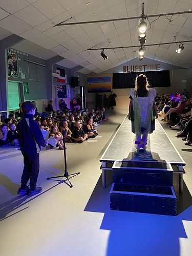 "Hi, I'm Elia and I was one of the models. When I was in the library waiting, I was calm. I did some stretches while Room 9 were having their turn because it helped me to get ready. Before I went on stage I felt nauseous, shaky, proud and nervous. When I went out it was like a wave of something new hitting me so hard I nearly fell over. When I stood on stage to wait for Tevita to do his bit, I smiled at all of the parents and they smiled back. It was a bit hard to walk on stage in high heels for the first time though. At the end of the cat-walk I heard someone say "She looks like a real model" and I nearly cried at that comment. After I had gone off stage I felt like I was going to burst with embarrassment. When I had taken my costume off, I went and sat down to watch the rest of the show. I can't find the word to describe how amazing the costumes looked and how well the models and readers were."