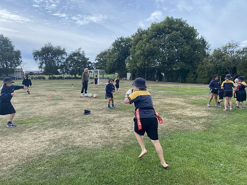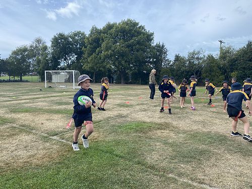 Each Team Explorer class had a session with South Canterbury Rugby today! We played head, shoulders, knees and toes and then had to beat a buddy to grab the cone. We then played bullseye which is similar to Rob the Nest. One group was on attack and the other was on defence. The students had to get the ball from the middle of the circle and take it back to the outside of the larger circle. We had so much fun today are looking forward to more sessions in the future!