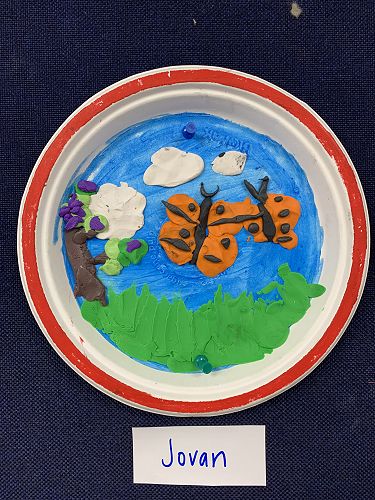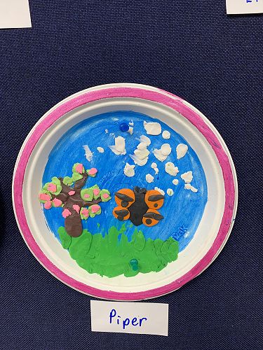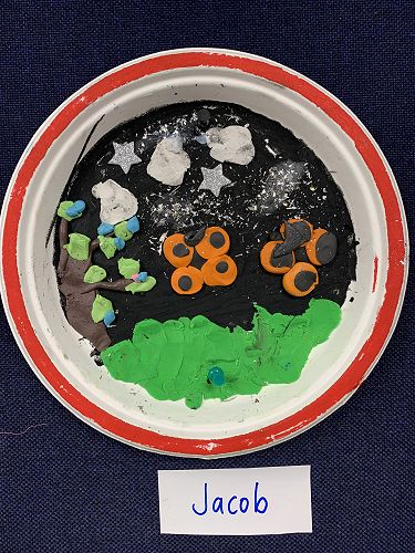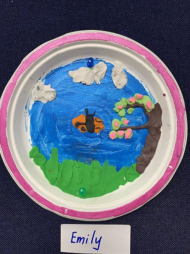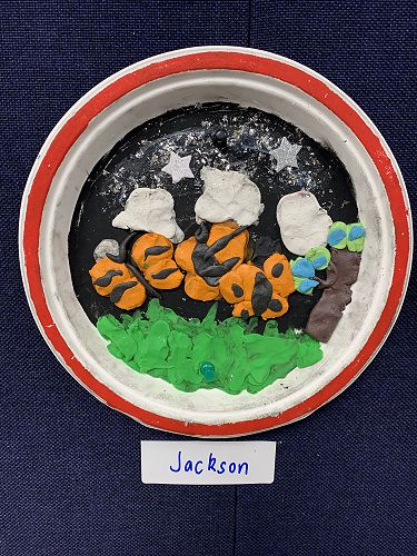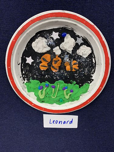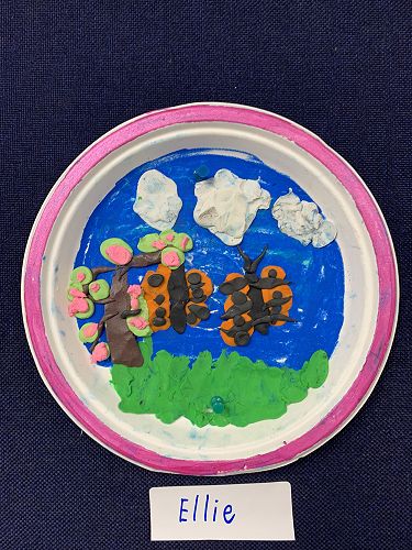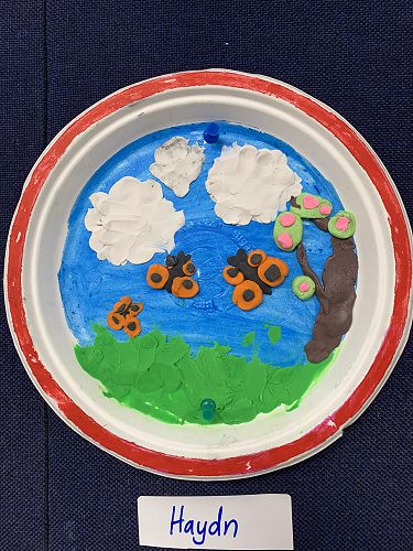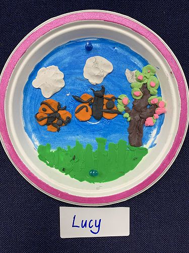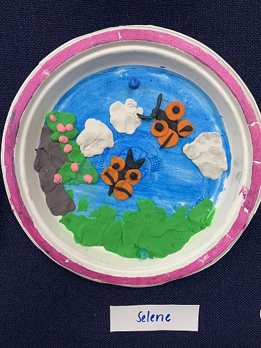 The children have been rolling, squeezing, manipulating, smoothing, and joining materials together. We then selected either a night or day scene and this formed the basis from which to work from. The children then added detail such as clouds, trees, flowers to add layers to their art work.
